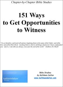 151 Ways to Get Opportunities to Witness. If you are like me, you have at some time said “I just don’t get any chances to really tell someone about Jesus anymore.” I put this list together a few years ago to remind myself what a silly thing that was to say… – Kathleen