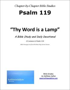 This is my 22-week study of Psalm 119. Each week covers 8 verses of this rich, poetic Psalm. Click on the links below to see what each of the 22 weeks brought to us: